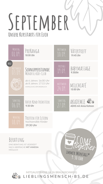 Klicke einfach auf die einzelnen Anzeigen und erfahre mehr über die einzelnen Kurse und Veranstaltungen. Hast du Fragen dazu oder findest du nicht das, was du suchst? Dann melde dich gern über unser Kontaktformular oder ruf' uns an!